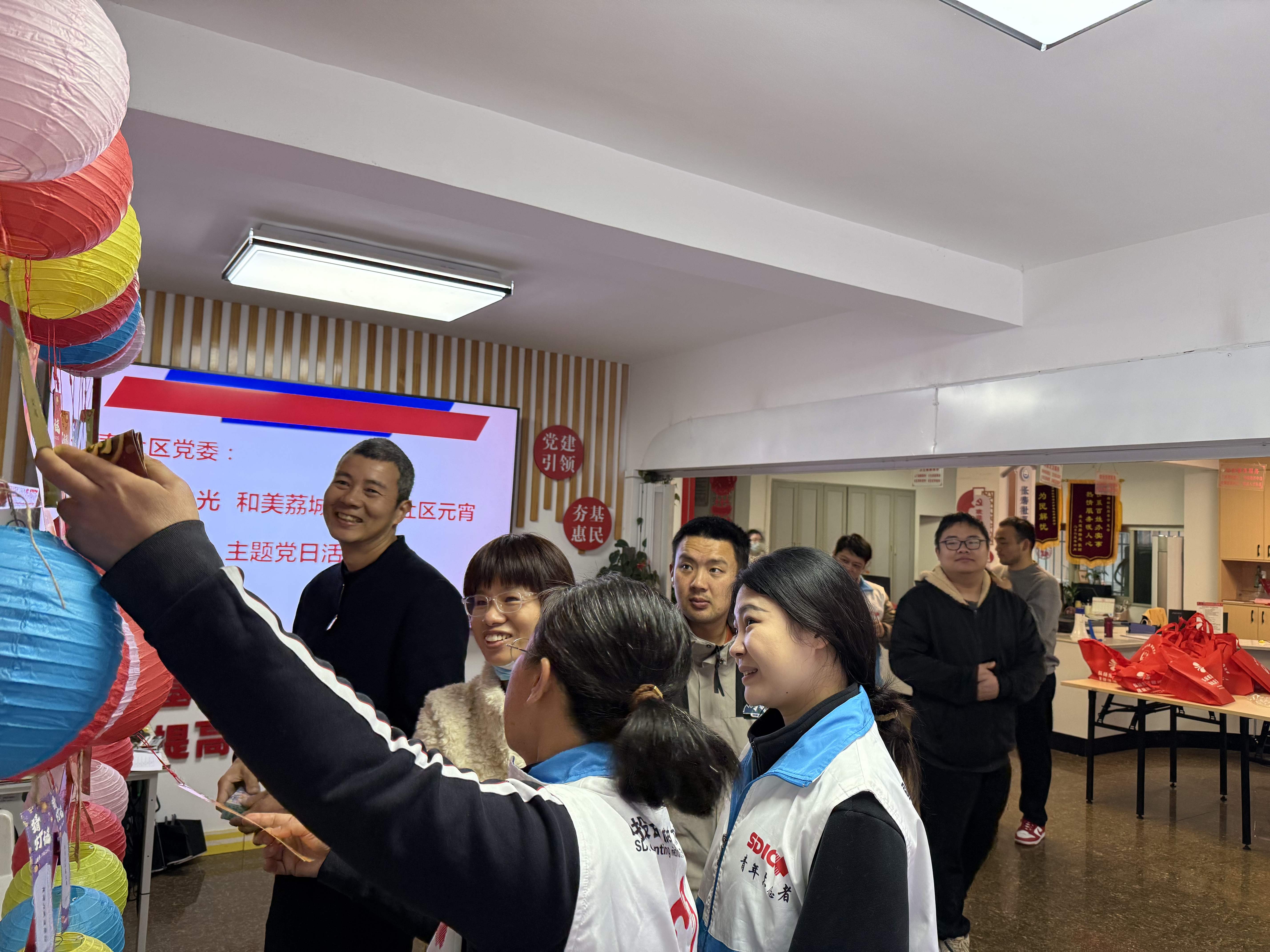 上午8时30分,身着蓝马甲的志愿者们已早早到位。在社区工作人员的带领下,迅速投入到场地布置工作中。挂灯笼、贴灯谜、摆道具……从生产一线到服务前沿,平日里与机组设备为伴的他们,此刻化身为社区邻里的“暖心使者”。