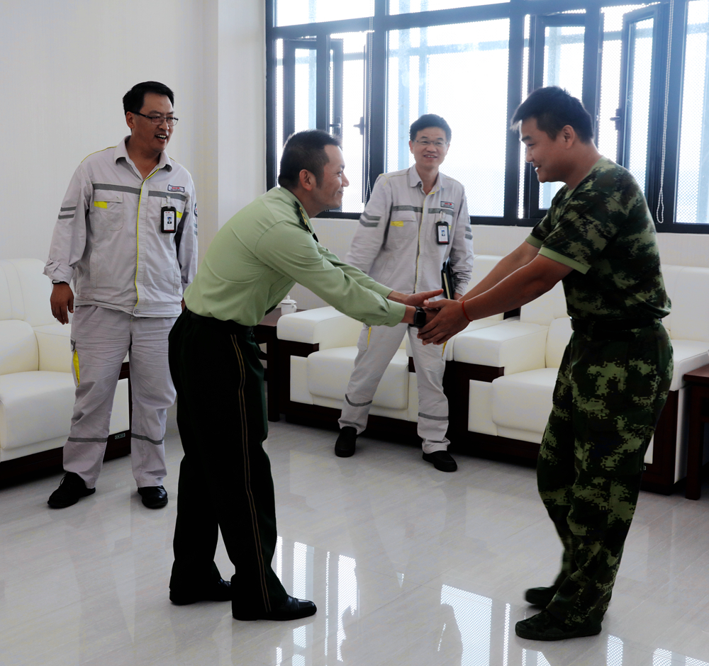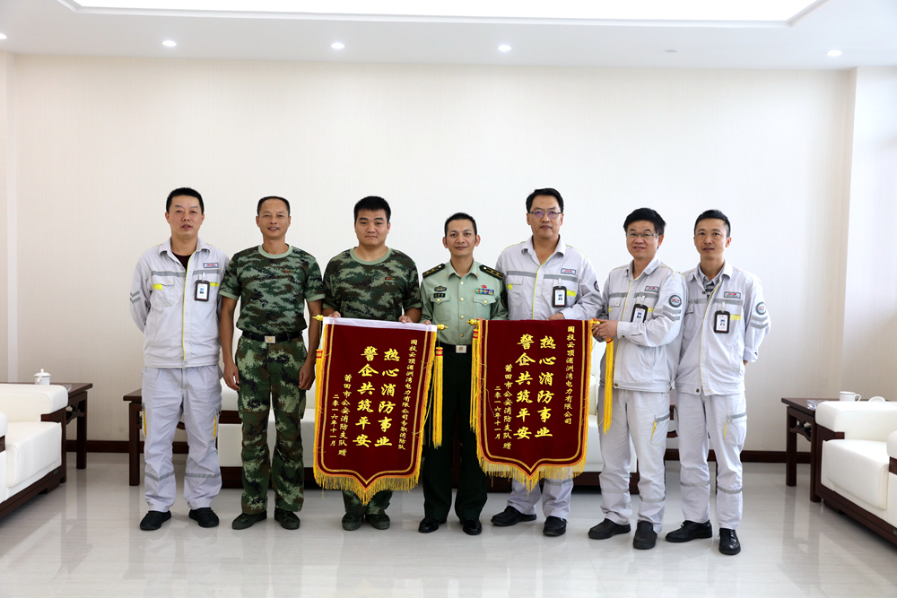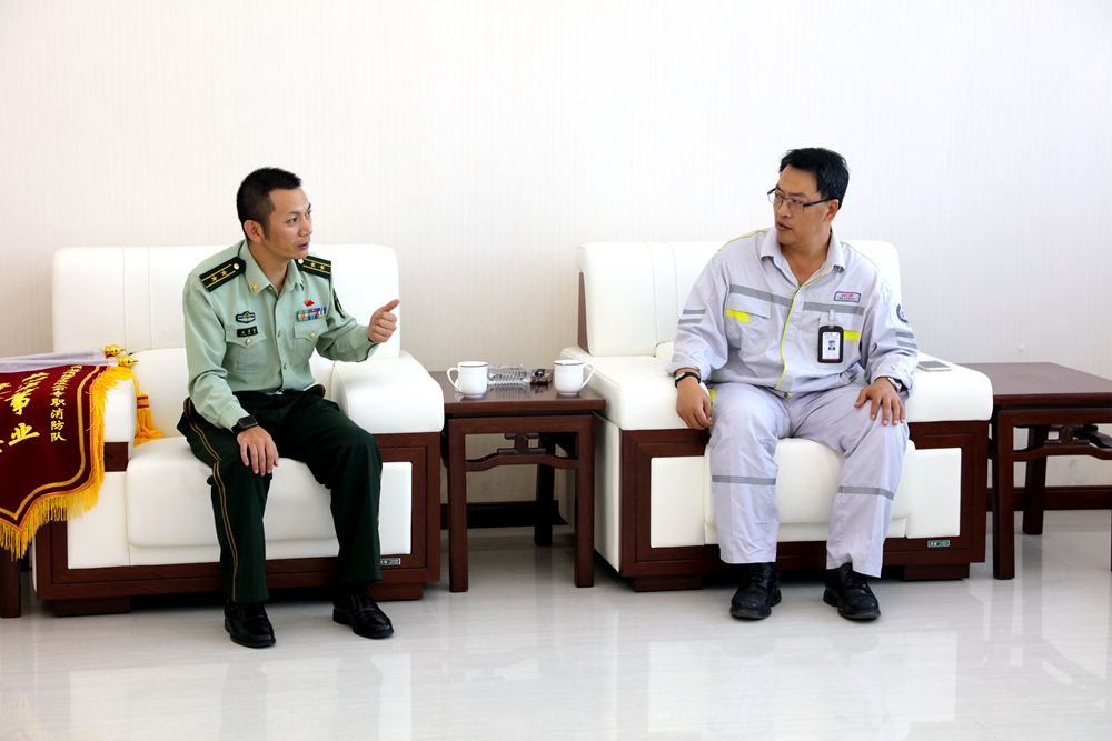 11月18日上午,莆田市消防支队庄清彬参谋长一行来到湄洲湾,与公司领导亲切会谈,并赠送“热心消防事业,警企共筑平安”锦旗。