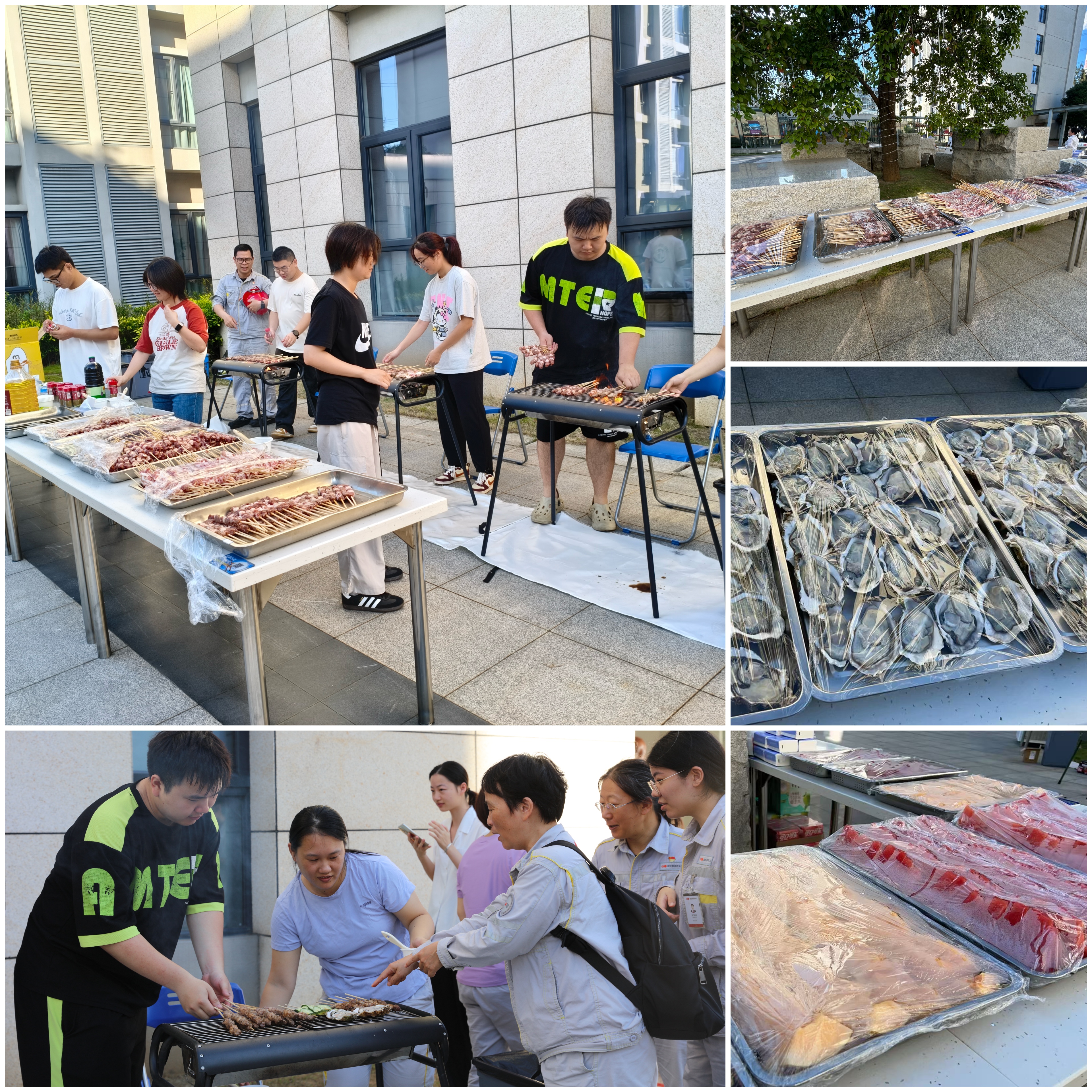 傍晚时分,公司中庭烧烤架上的肉串滋滋冒油、飘香四溢。大家围坐畅谈,有人主动帮忙翻烤食材,有人递上冰镇饮品,平日里严肃的老师傅们也笑着分享烤串小秘诀。新老员工唠家常、品美食,在清脆的碰杯声与朗朗笑声中,“我们是一家人”的暖意随烟火气缓缓流淌。