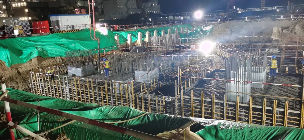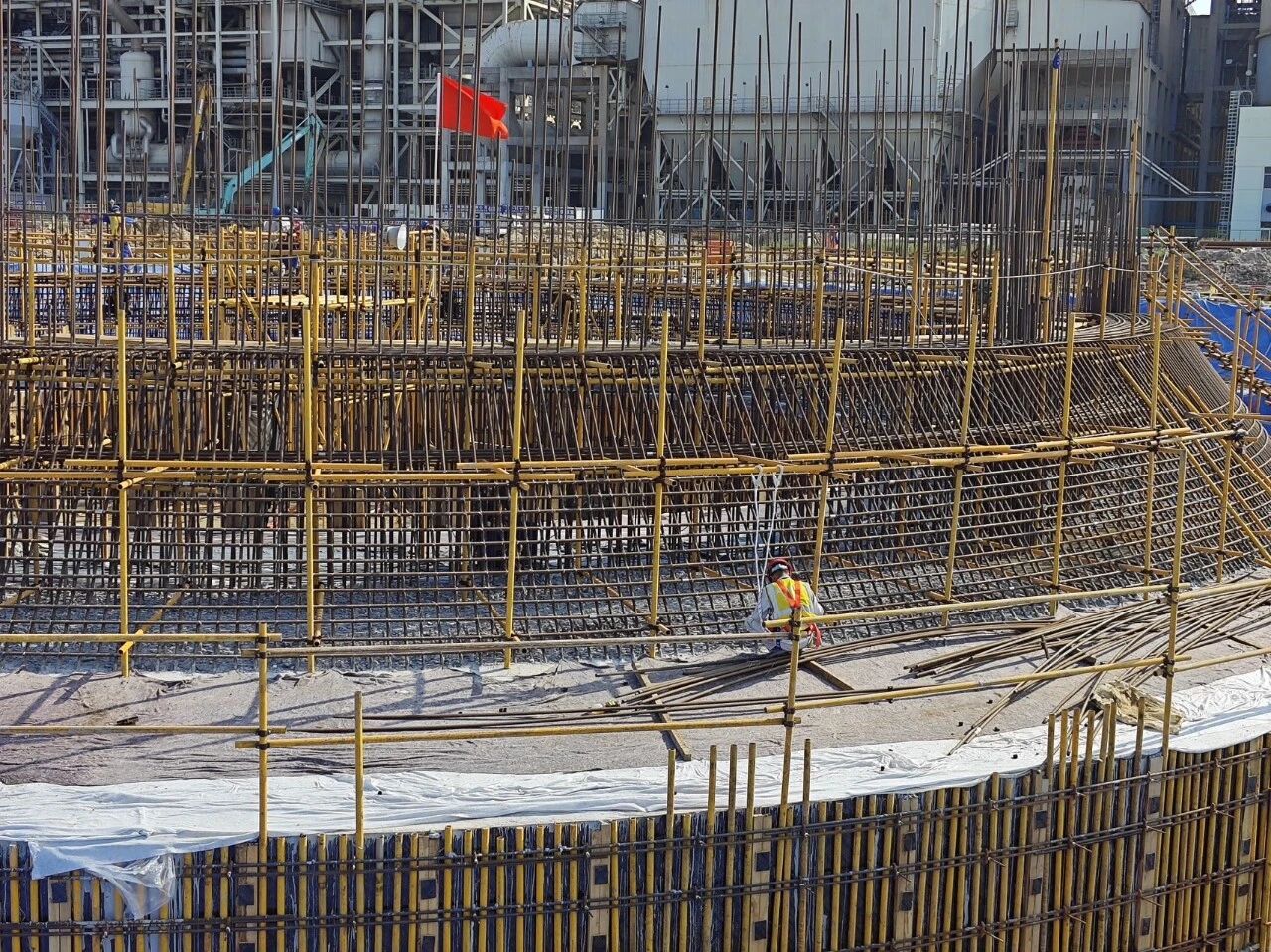 在此基础上,主体结构“稳步推进”。5#机锅炉基础钢筋绑扎高效开展,部分承台完成混凝土浇筑,施工人员全程盯控温度控制与养护流程;烟囱基础环壁混凝土浇筑顺利完成,当前正有序进行基坑分层回填与压实,向下一个关键节点节点全力冲刺。