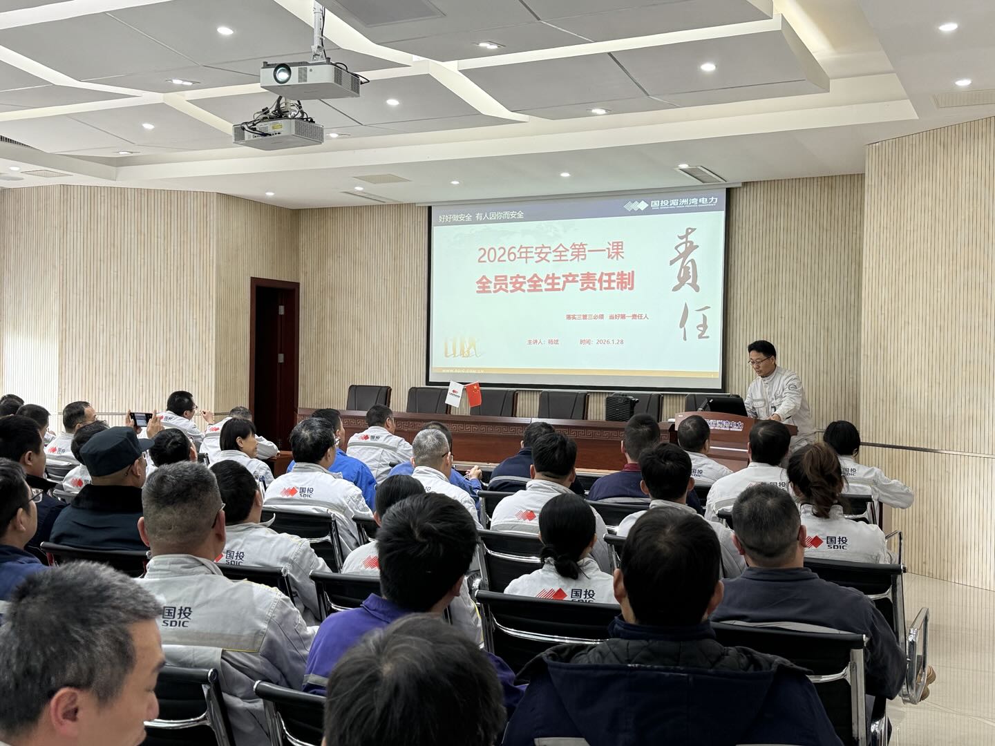 2026-01-30为深入贯彻落实全员安全生产责任制,拧紧全员安全生产“责任弦”。1月28日,国投湄洲湾电力“中层干部上讲台”新年第一课如期开讲,聚焦“全员安全生产责任制”主题。公司中层管理人员、承包商项目经理及专兼职安全员、班组长等全员参训,学习安全知识、压实安全责任,为全年安全生产工作开好局、起好步。
