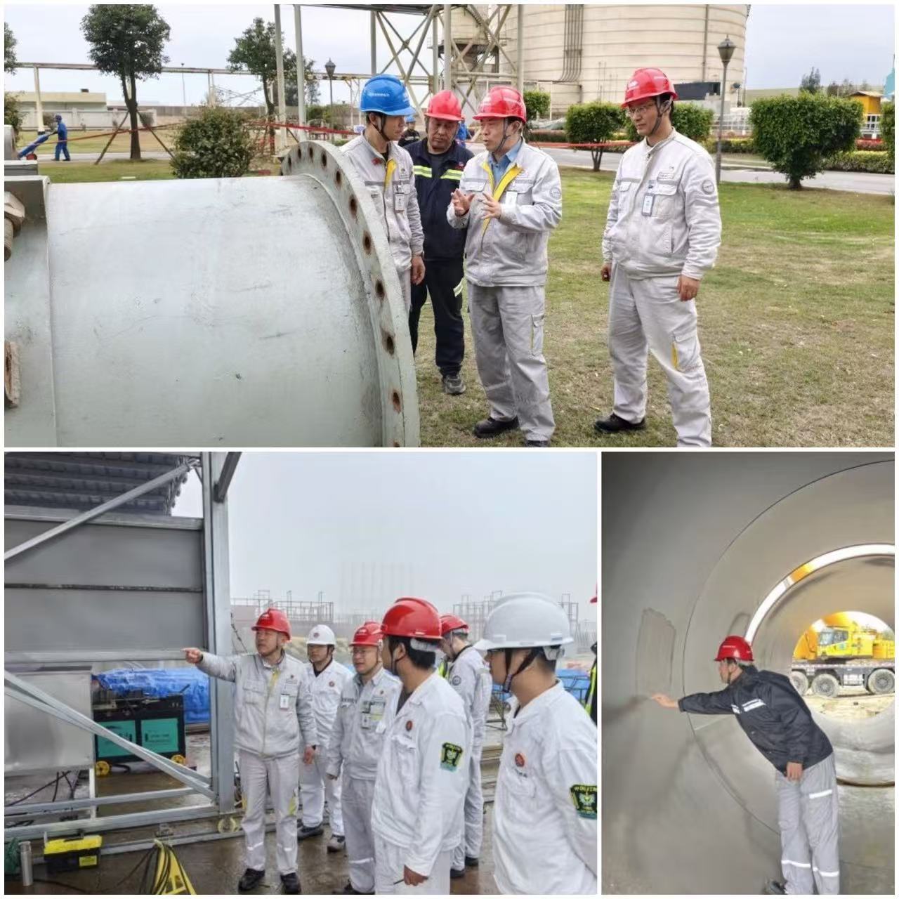 在如火如荼的三期2×660MW超超临界机组基建现场,施工人员严守安全质量红线,聚焦管道安装、钢结构吊装等关键工序及较大风险作业环节,强化电力工程建设全过程安全管控。公司领导带队深入东方海钾供水管路接口施工现场、三期循环水石方切割现场及取排水工程施工等现场开展两会保电期间安全督查;循环水管道施工环节,杨彦宇等员工俯身细致查验管道内壁细节,从严把控施工质量。工程管理部全员加强关键工序的监督,逐项核验施工流程与质量,切实筑牢电力基建安全防线。