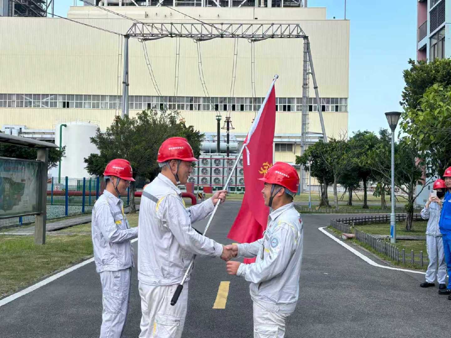 #3机组检修启动前夕,设备楼前,8面鲜红的党团突击队旗帜迎风飘扬。“锅炉防爆青年突击队”“CEMS技改攻坚突击队”......红色旗面上金色字体在阳光下灼灼发亮,队员们身着工装,头戴安全帽,胸前的党徽格外醒目——这是党团员先锋扛旗出征的时刻。